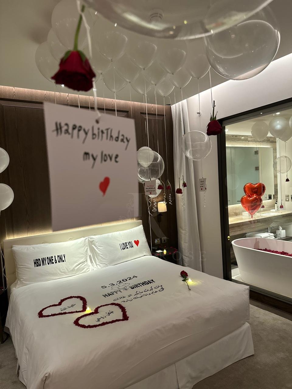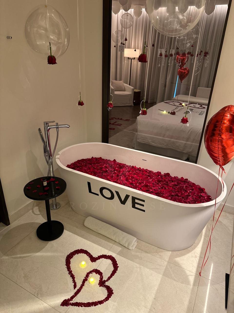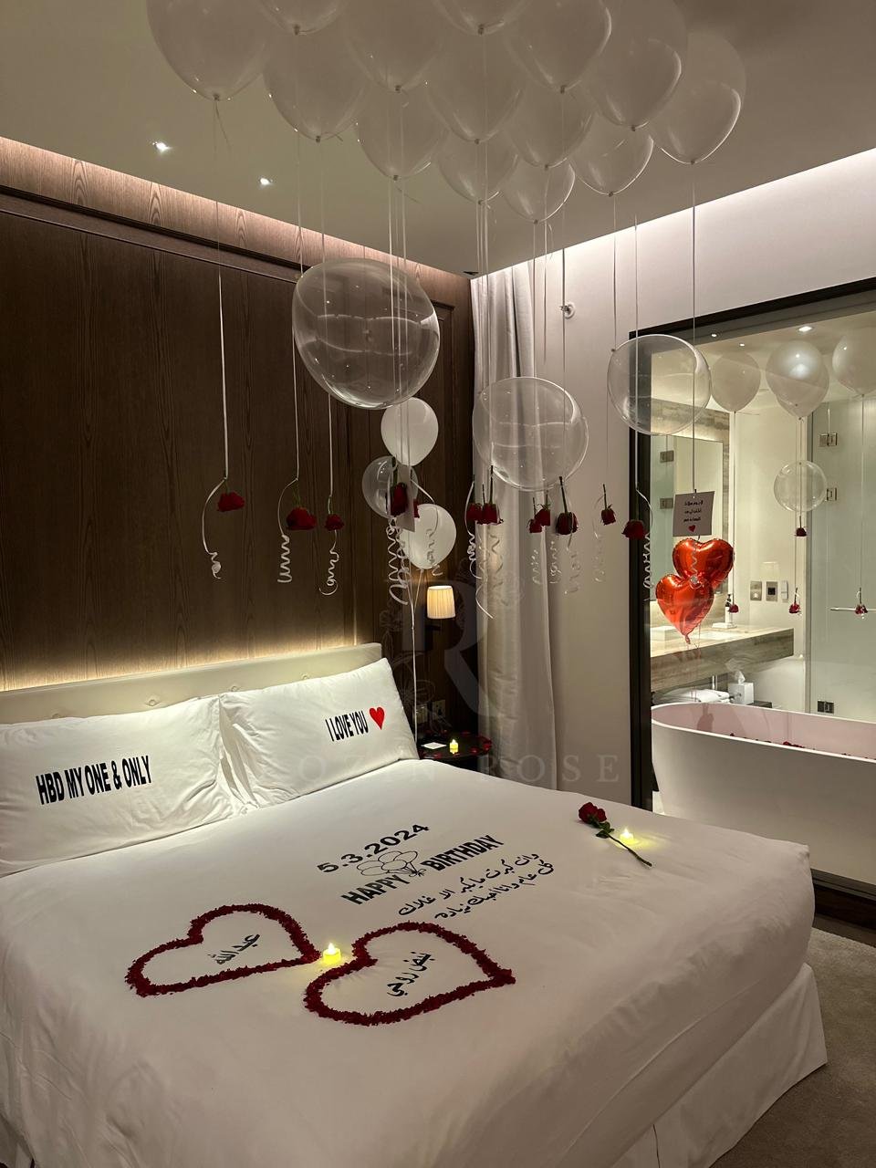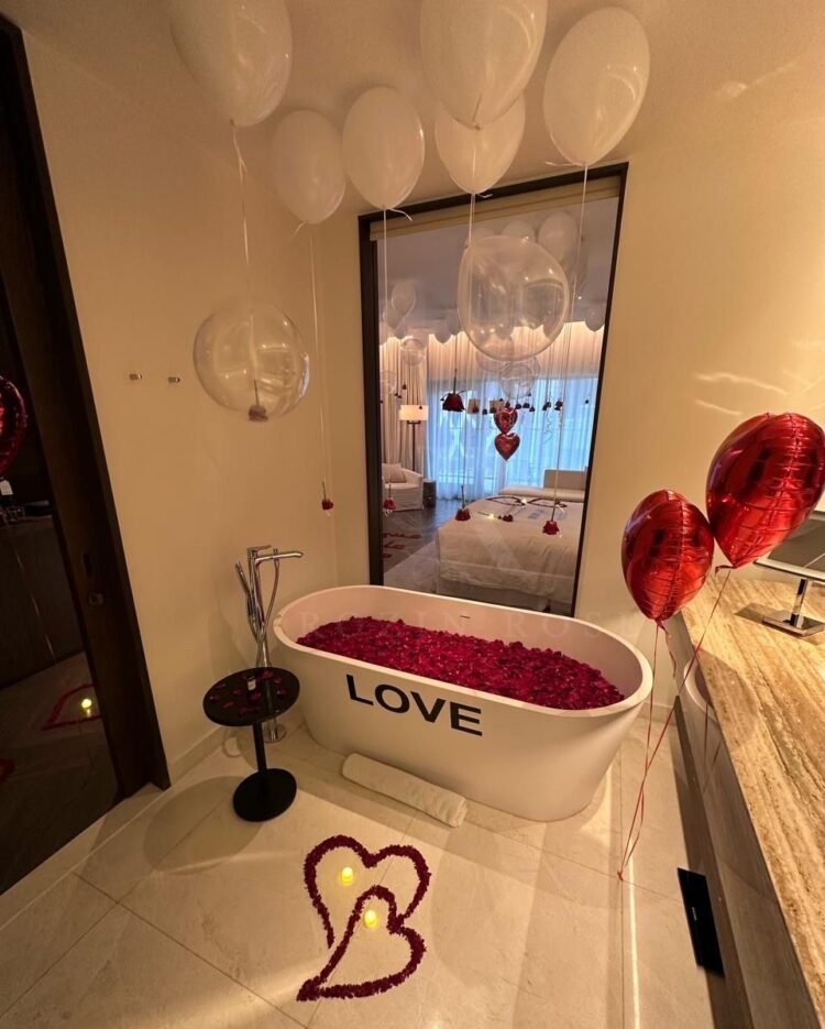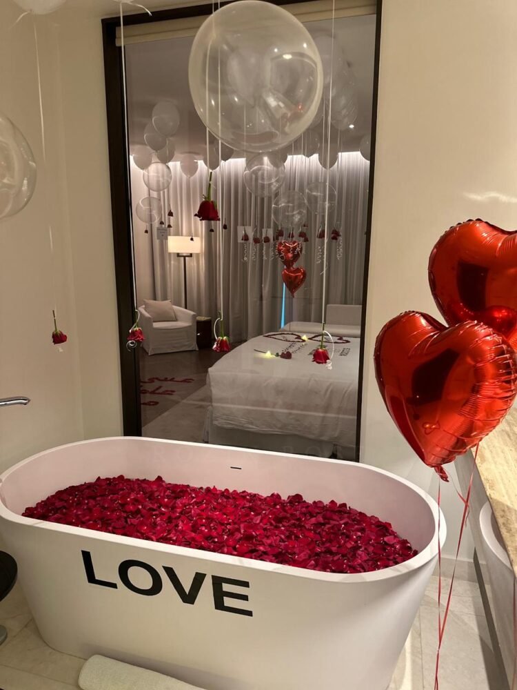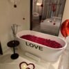 •🛁 تزيين الحمام ببتلات الورود وبالون