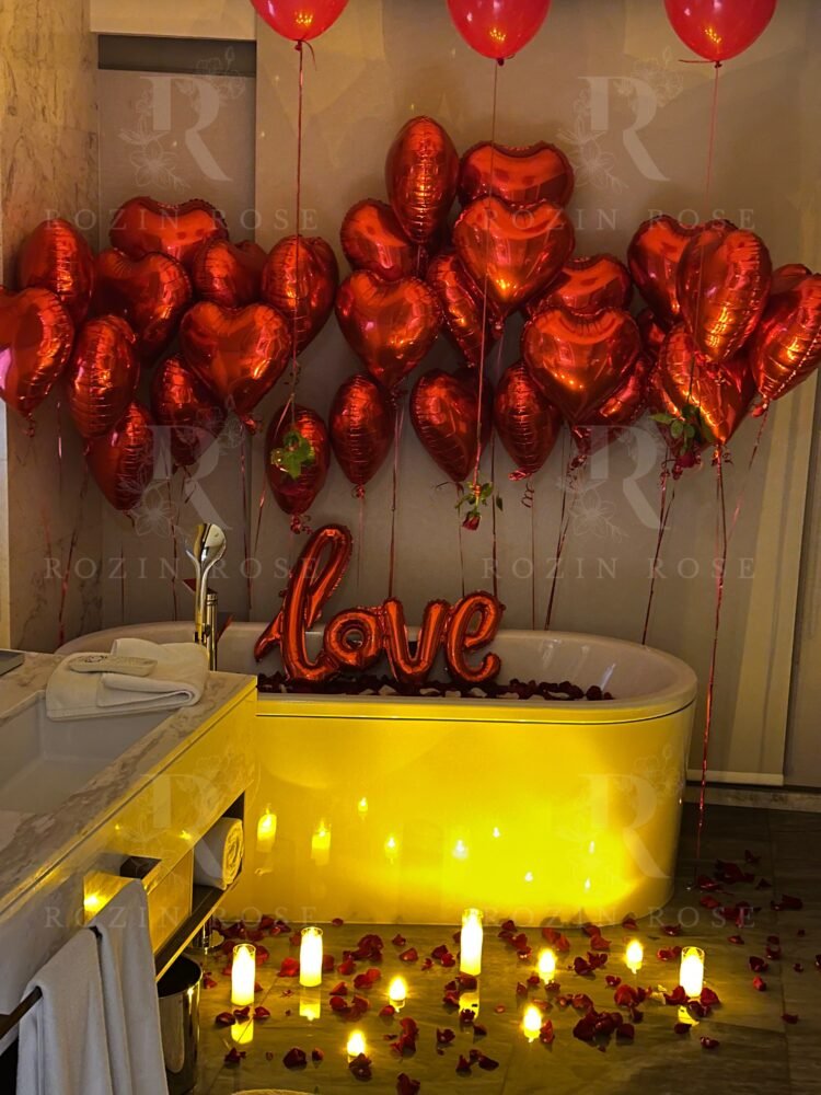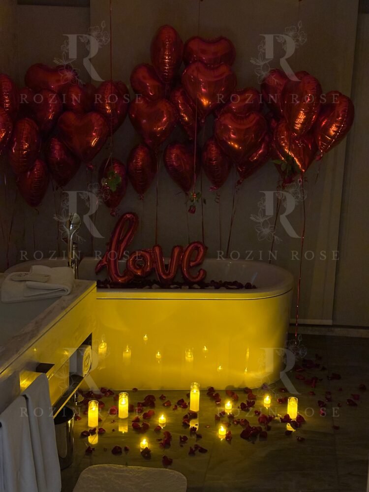 •🛁 تزيين الحمام ببتلات الورود وبالون