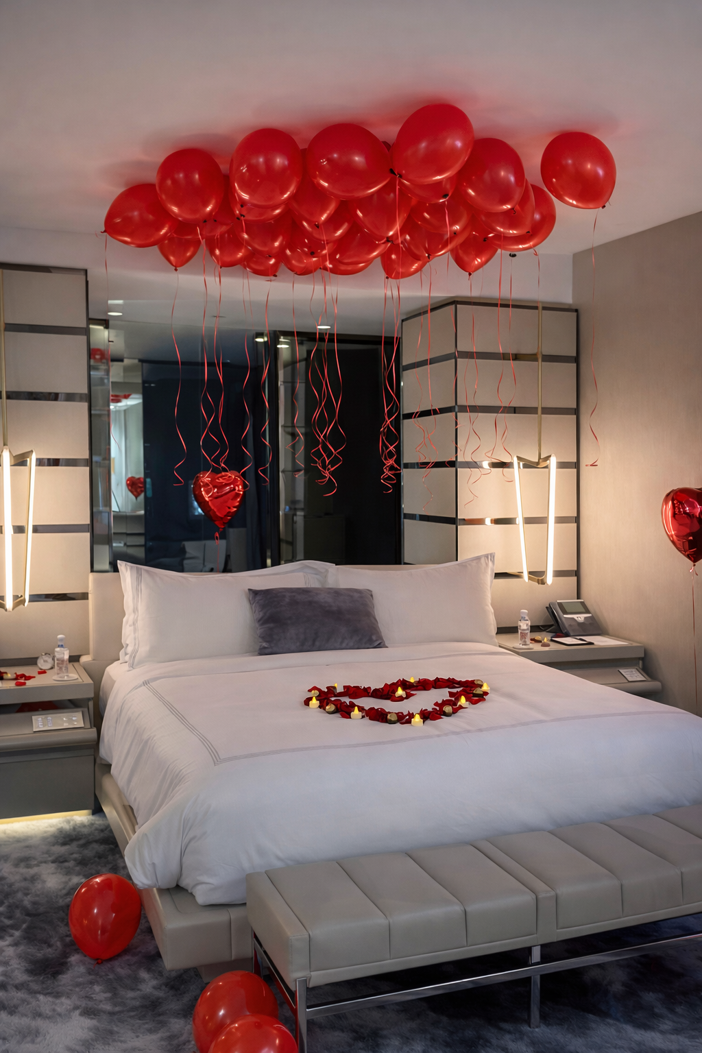 ٨ بالونات على شكل قلب موزعة في الغرفة