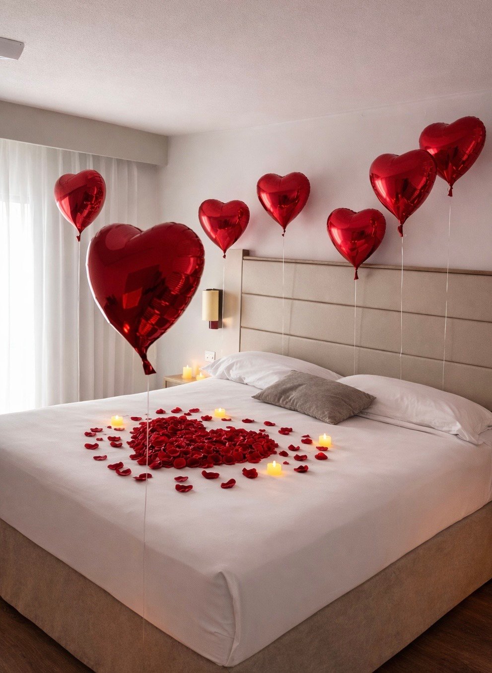 تزيين غرفة مفاجأة رومانسي – تنسيق بالونات على شكل قلب