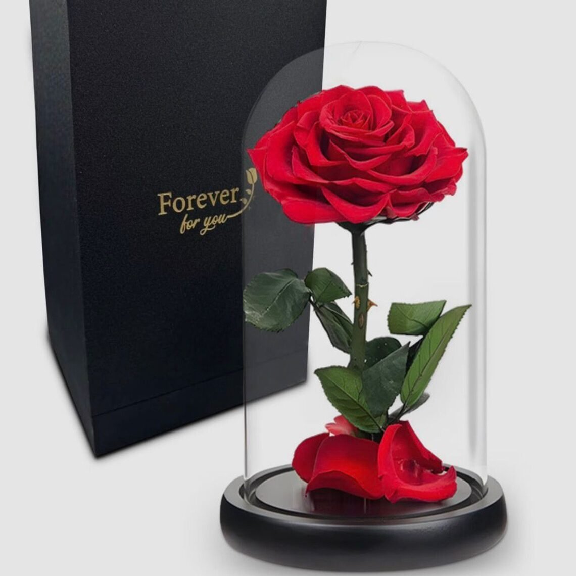The red Forever Rose is a timeless symbol of elegance, mystery, and everlasting love.
