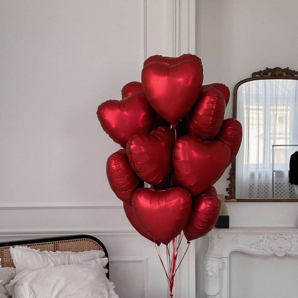 A beautiful arrangement of 10 heart-shaped helium balloons, thoughtfully styled to create a romantic and elegant atmosphere.